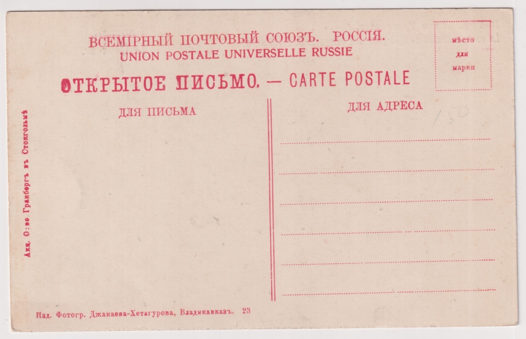 В.Г.Д. Валы Рудницкого. Открытое письмо. Акц.О:во "Гранберг", Стокгольм. Изд-е фотогр. Джанаева - Хетагурова, Владикавказ.