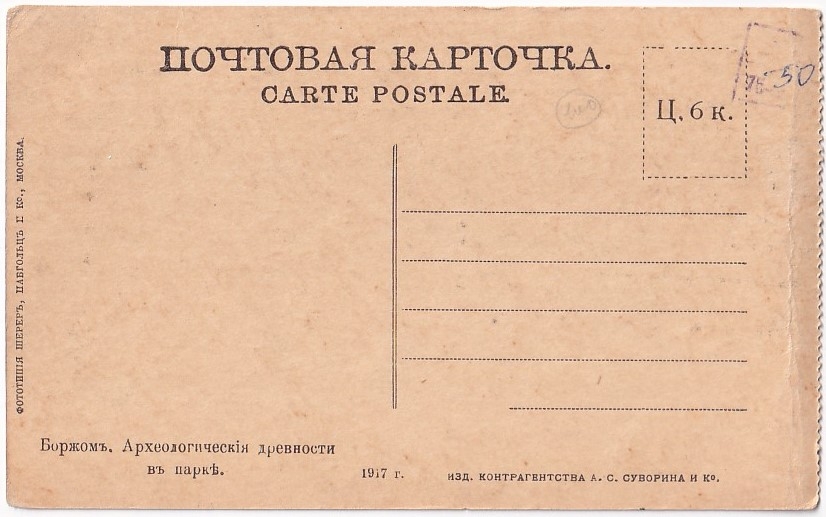 Главная - Каталог - Старинные открытки - Открытки. Новые поступления. - Боржом. Археологические древности в парке. Почтовая карточка. Изд. Контрагентства А.С. Суворина и К, 1917 г.