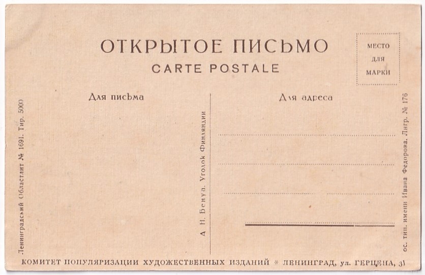 Главная - Каталог - Старинные открытки - Открытки. Новые поступления. - Уголок Финляндии. Худ. А.Н. Бенуа. Открытое письмо. Комитет популяризации худ. изданий. 1920-е гг.