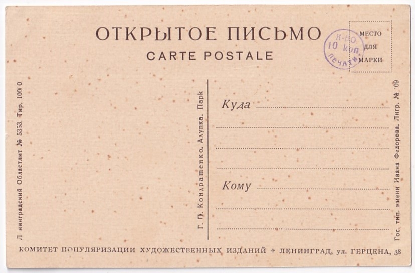 Главная - Каталог - Старинные открытки - Открытки. Новые поступления. - Алупка. Парк. Худ. Г.П. Кондратенко. Открытое письмо. Комитет популяризации худ. изданий. 1920-е гг.