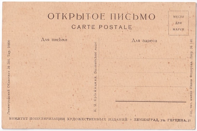 Главная - Каталог - Старинные открытки - Открытки. Новые поступления. - Балтийское море. Худ. К.Я. Крыжицкий. Открытое письмо. Комитет популяризации худ. изданий. 1920-е гг.