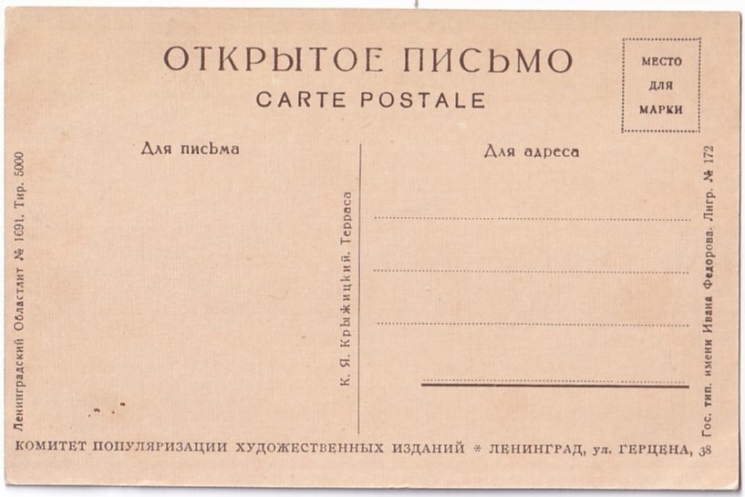 Терраса. Худ. К.Я. Крыжицкий. Открытое письмо. Комитет популяризации худ. изданий. 1920-е гг.