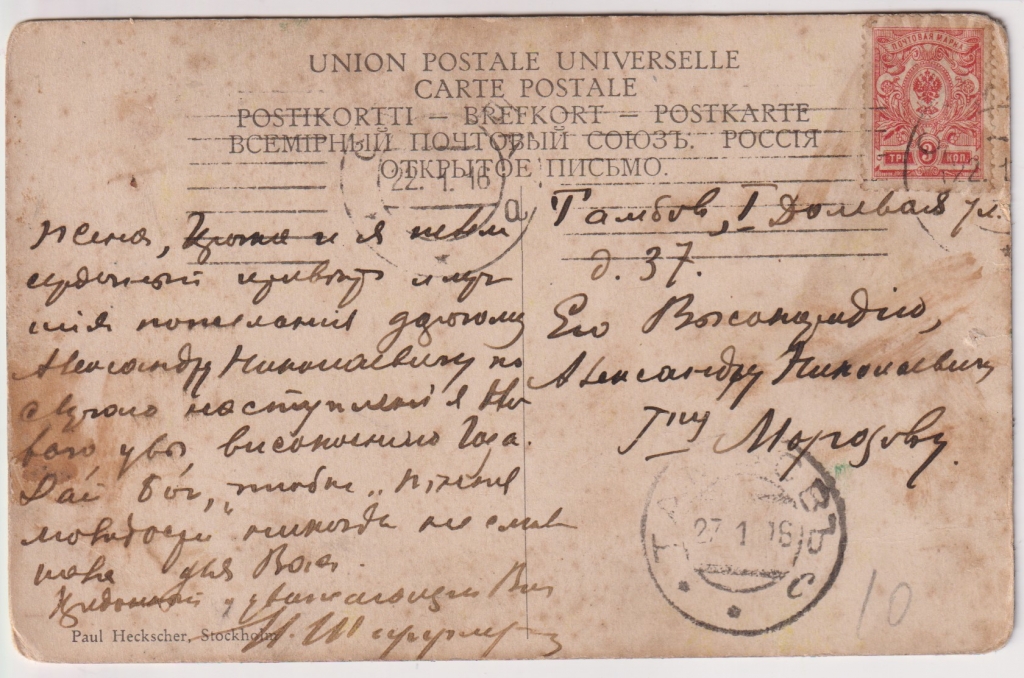 New Песня молодости (Женни Линд) Открытое письмо Всемирный почтовый союз Россия