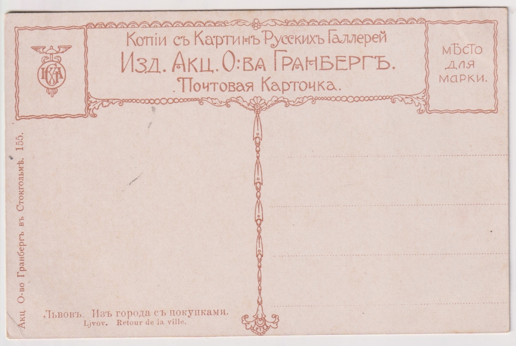 Главная - Каталог - Старинные открытки - Открытки. Новые поступления. - New Из города с покупками. Худ. Львов. Открытое письмо. Изд-е Акц. о-ва Гранберг.