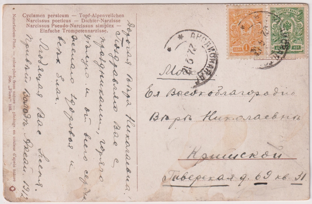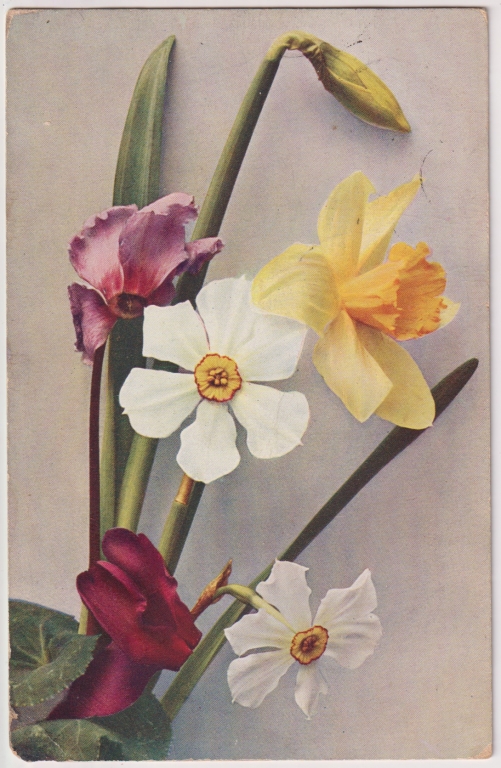 Главная - Каталог - Старинные открытки - Открытки. Новые поступления. - New Цикламен и Нарциссы Открытое письмо