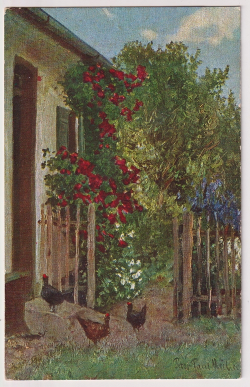 Главная - Каталог - Старинные открытки - Открытки. Новые поступления. - New Куры в цветущем саду Открытое письмо Erika