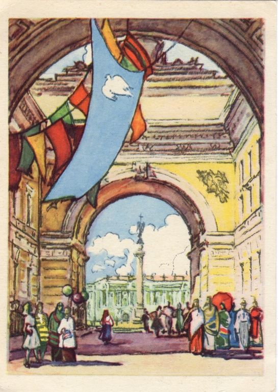 Главная - Каталог - Старинные открытки - VI Всемирный фестиваль молодежи и студентов 1957 года - Советская открытка Ленинград праздничный Острова Изогиз 1957