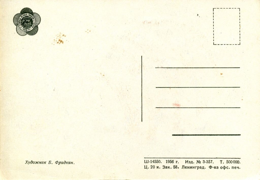 Главная - Каталог - Старинные открытки - VI Всемирный фестиваль молодежи и студентов 1957 года - Открытка "ФМиС 1957" Худ. Фридкин