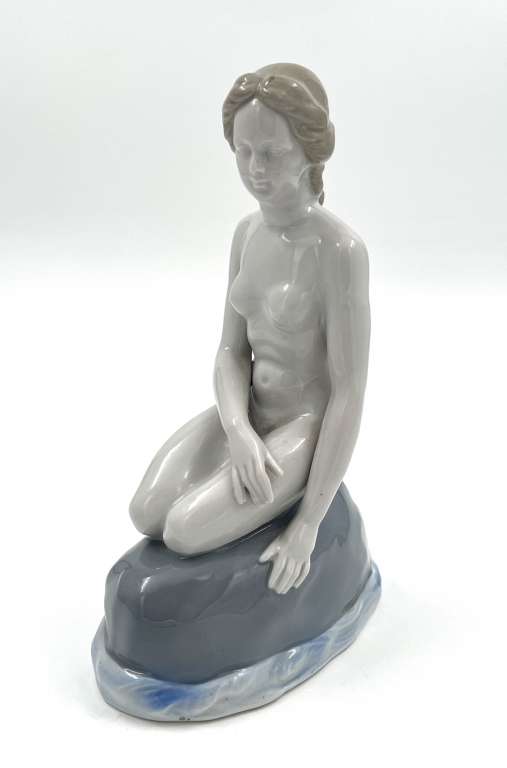Обнаженная на камне. Скульптура. Фарфор, роспись. Германия, Графенталь, середина ХХ в. Без сколов, трещин и реставрации.