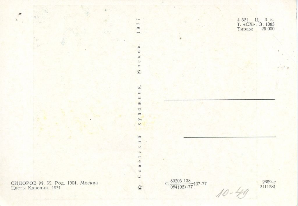 Главная - Каталог - Старинные открытки - Старинные открытки с натюрмортами - Открытка Советский художник Цветы Карелии Сидоров