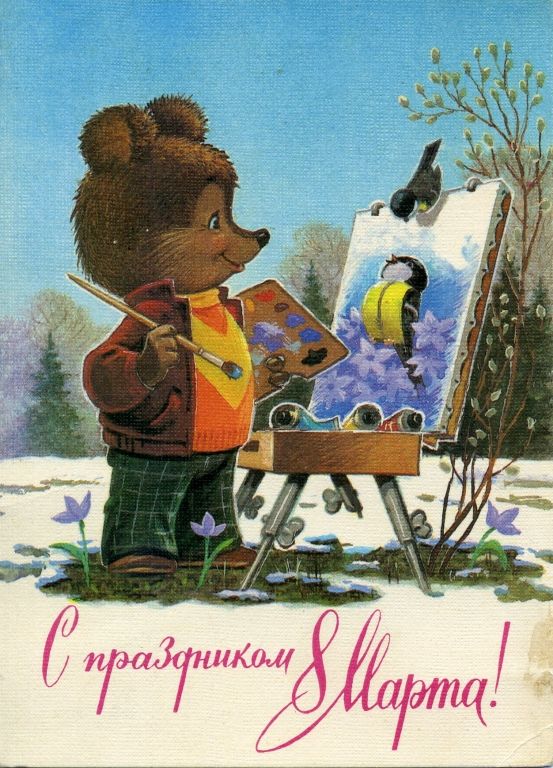 - Советские открытки с героями сказок, зайцами, медведями, белками