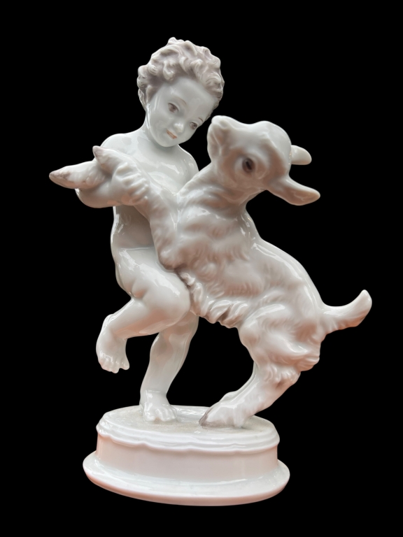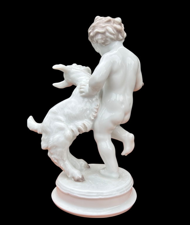 Статуэтка «Путто с козленком». Фарфор, роспись. ROSENTHAL, Германия. Ск. Max Hermann Fritz Клеймо 1939 г.