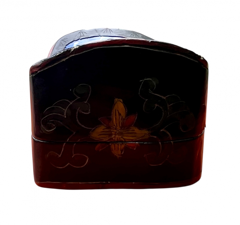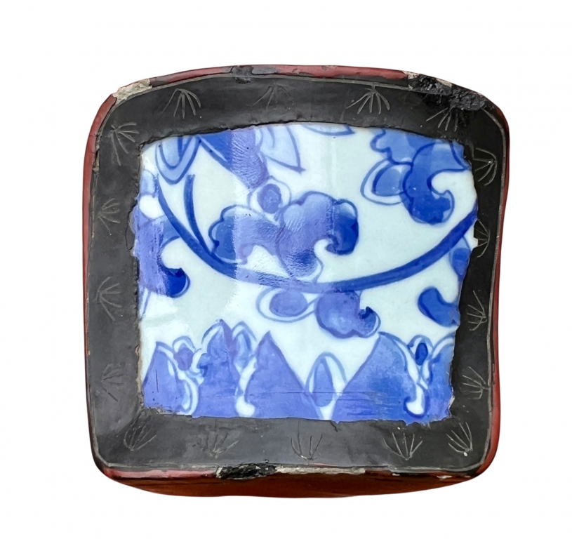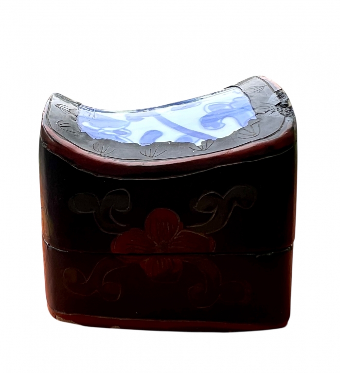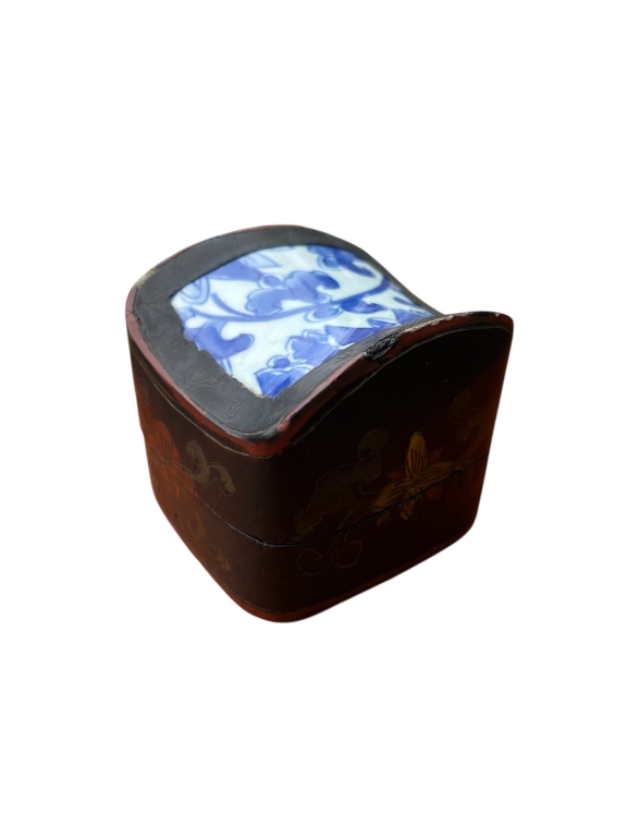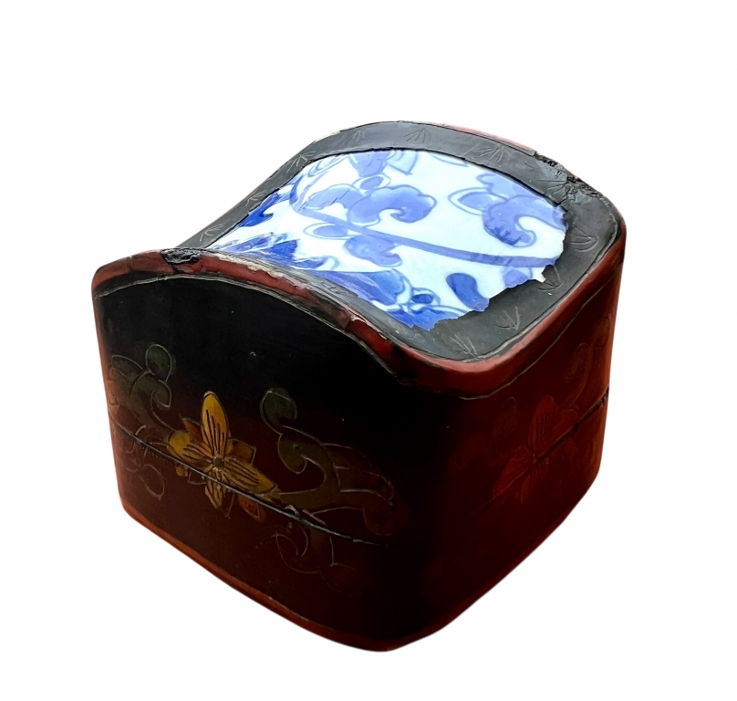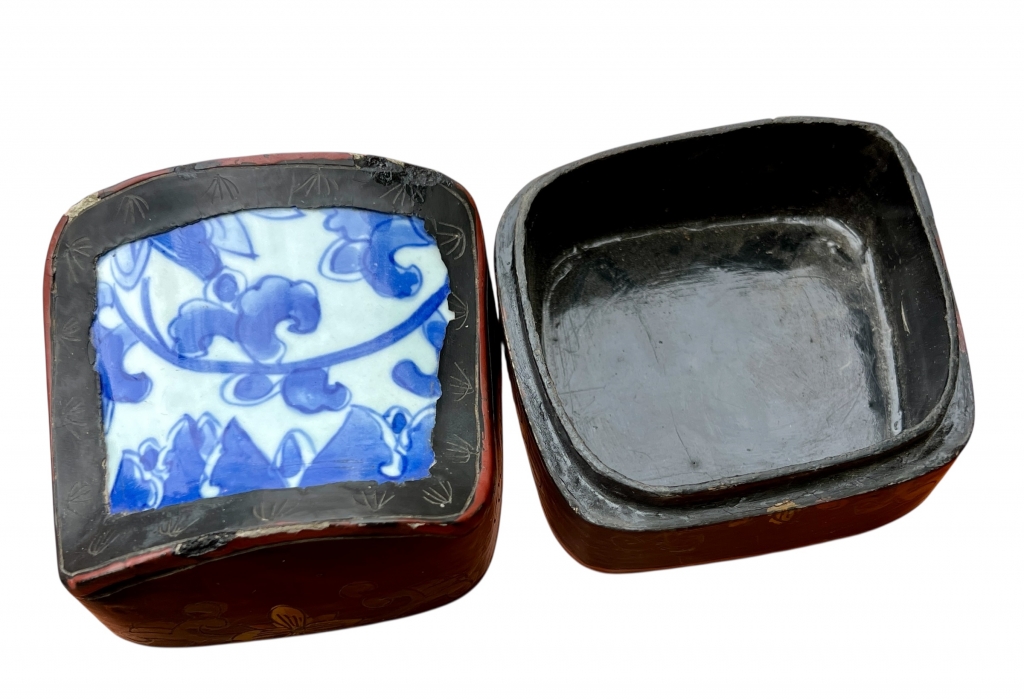 Лаковая шкатулка со вставкой из фрагмента старинной китайской фарфоровой вазы. Лак, папье - маше. Старый Китай.
