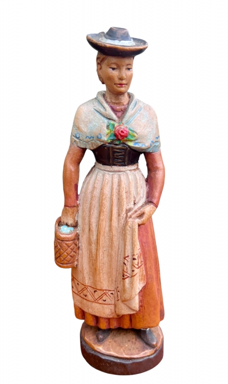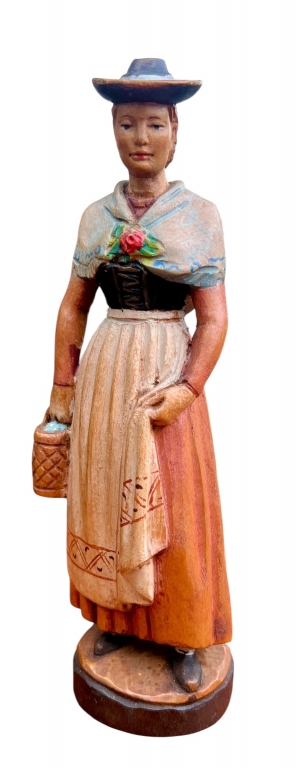 Дама в тирольском костюме. Скульптура. Дерево (клен), резьба, роспись. Штамп мастера. Германия, Середина 20 в. Высота 19 см. В очень хорошей сохранности.