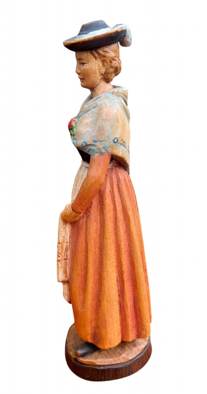 Дама в тирольском костюме. Скульптура. Дерево (клен), резьба, роспись. Штамп мастера. Германия, Середина 20 в.