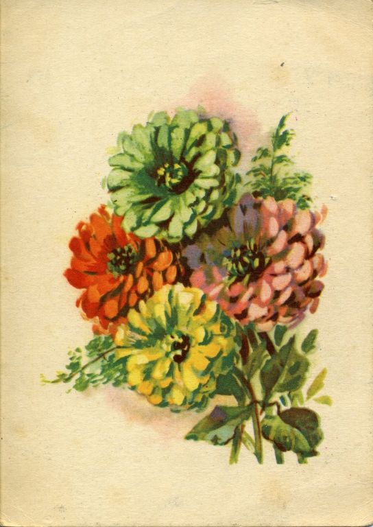 Главная - Каталог - Старинные открытки - Открытки с цветами и фруктами - Винтажная открытка "Герберы". Польша