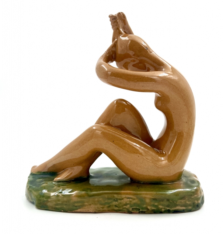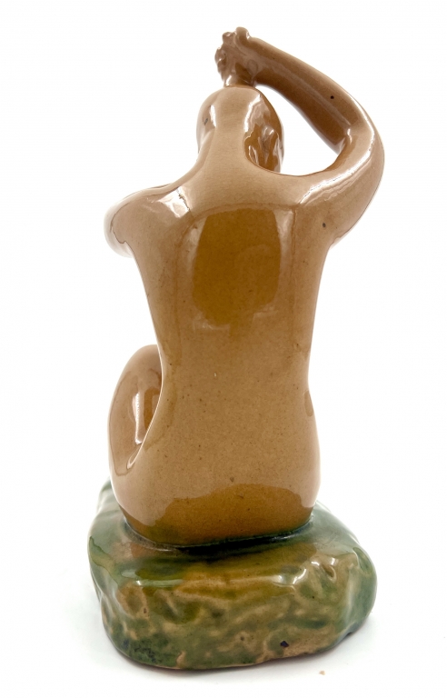 Статуэтка "Купальщица". Обливная керамика. Гжель. Период СССР.